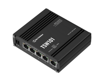 The TSW101 is a plug-and-play automotive switch dedicated to in-vehicle applications. Featuring five Gigabit Ethernet ports, including four with PoE+ support, the TSW101 can power your end devices while connecting them to the Internet. This automotive switch can be powered by 12 V or 24 V car battery, requiring no additional PSU.